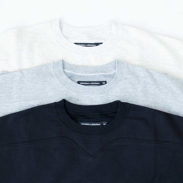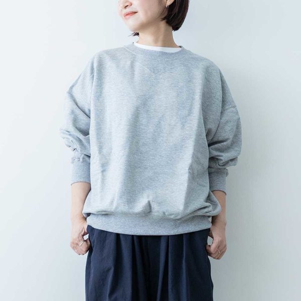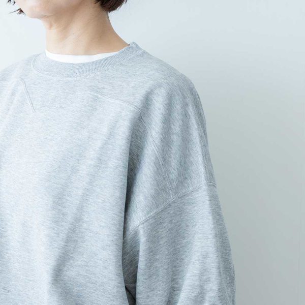 袖の切替えで立体感を演出し、肩幅身幅にゆとりを入れたクルーネックスウェットです。