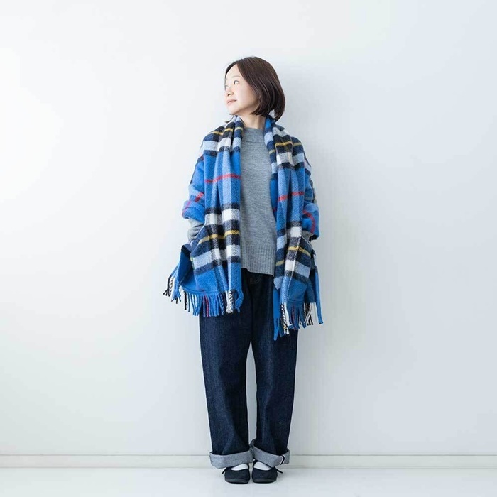 程よく厚みのあるウール地なのでブランケットを肩からかけているような温かさ。
