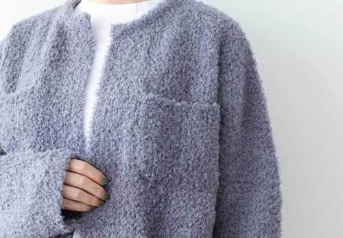 「mizuiro ind ポケット付きヘアリークルーネックカーディガン」
