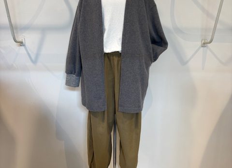 ハリが少なく柔らかい素材感のため広がりすぎず やや落ち感のあるシルエットです。